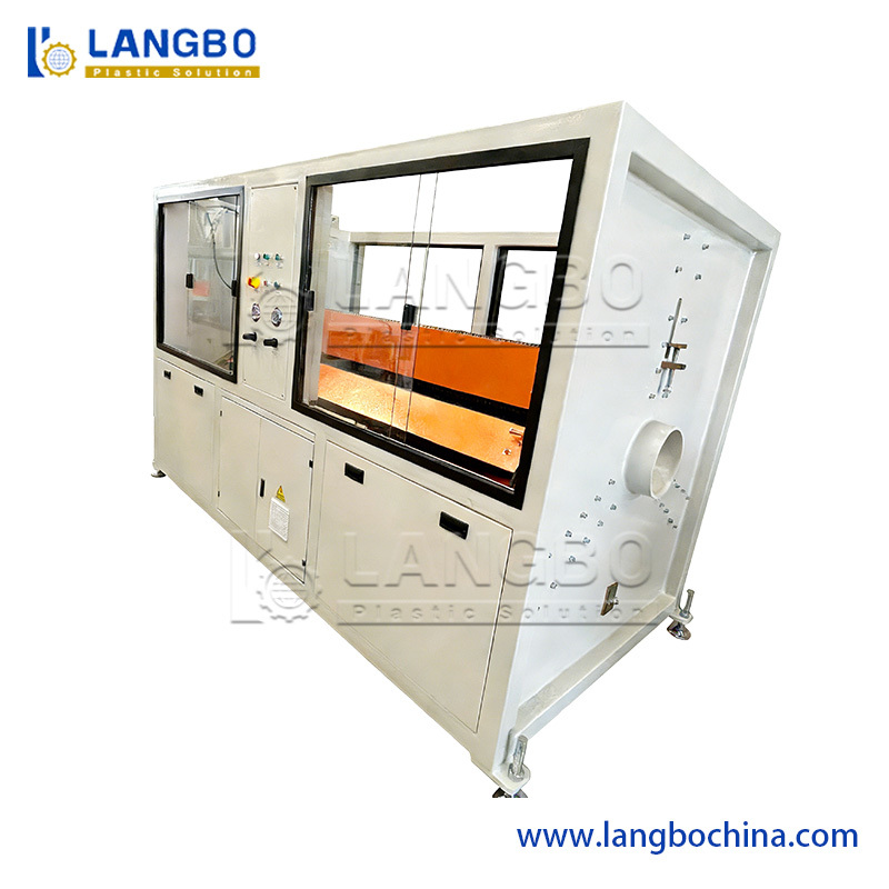 Apresenta uma seção de resfriamento de 6 metros com vários bicos de água para controle ideal de temperatura. A instalação precisa garante a máxima eficiência de resfriamento, endurecendo os tubos de PVC de maneira eficaz à medida que passam pelo banho-maria na configuração de fio duplo.