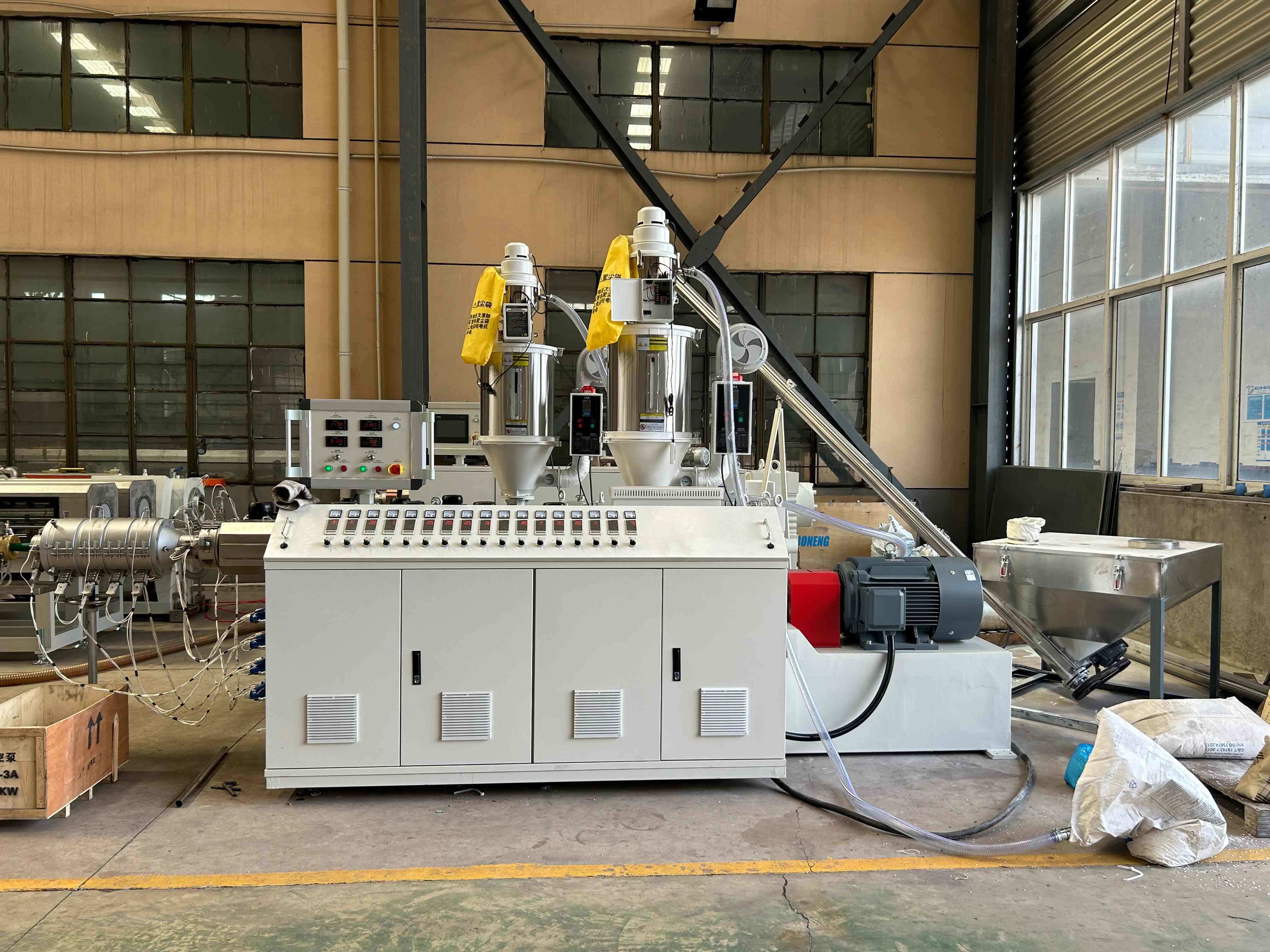 Os grânulos de resina PPR são carregados no funil e alimentados automaticamente no sistema de secagem para remover a umidade, garantindo uma qualidade de extrusão ideal.