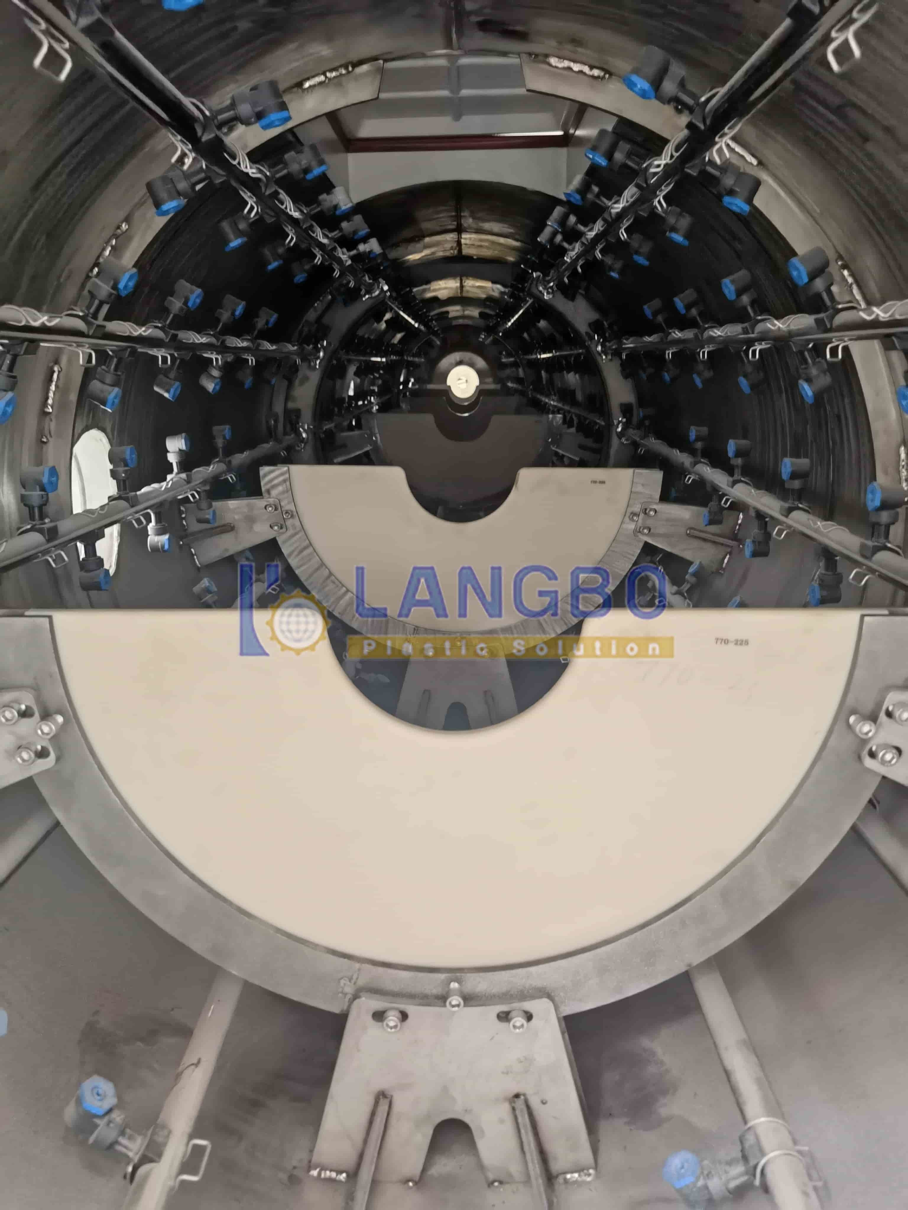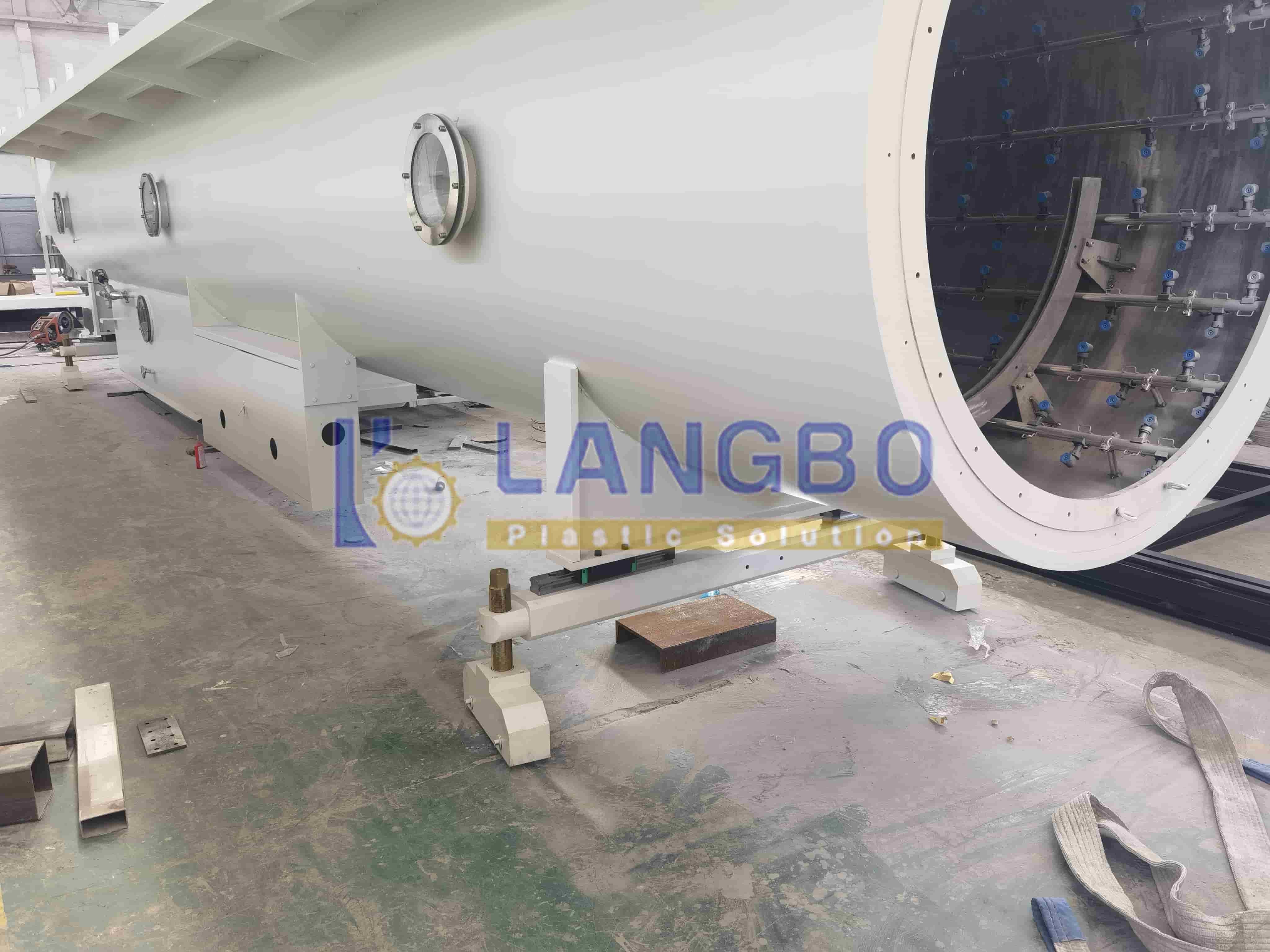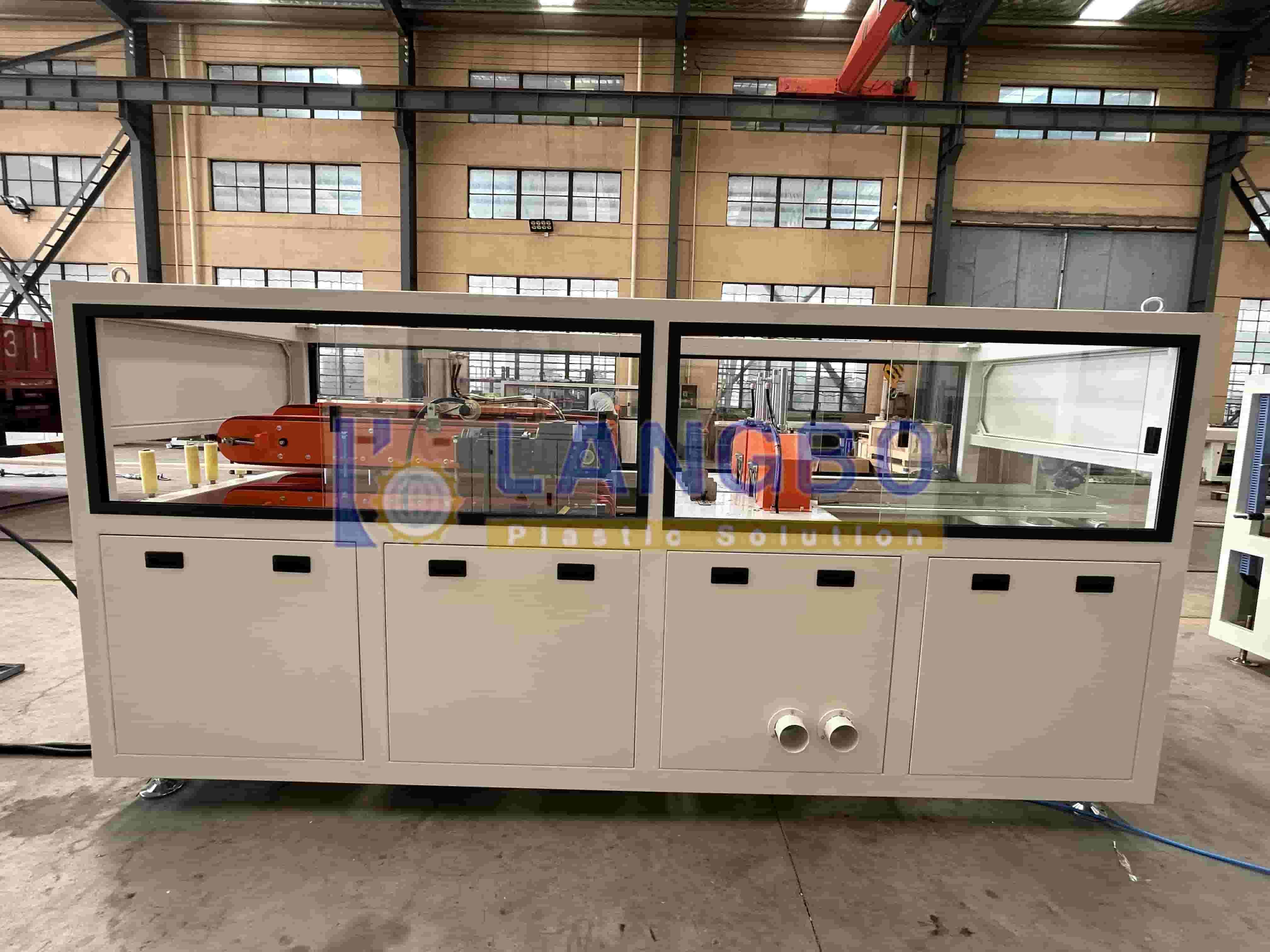 O tanque de calibração a vácuo possui uma estrutura de duas câmaras, integrando funções de calibração a vácuo e resfriamento. Tanto o tanque de vácuo quanto o tanque de resfriamento por pulverização são feitos de aço inoxidável 304. O sistema de vácuo de alto desempenho garante uma dimensionamento preciso dos tubos.
