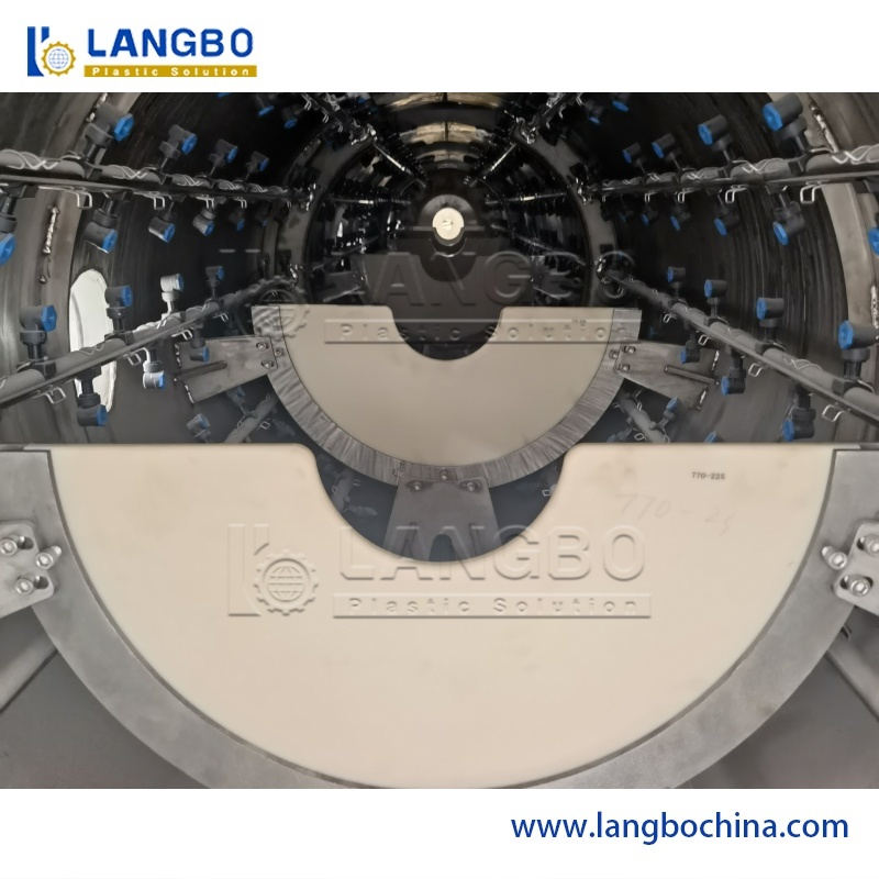O tanque de calibração a vácuo possui uma estrutura de duas câmaras, integrando funções de calibração a vácuo e resfriamento. Tanto o tanque de vácuo quanto o tanque de resfriamento por pulverização são feitos de aço inoxidável 304. O sistema de vácuo de alto desempenho garante uma dimensionamento preciso dos tubos.
