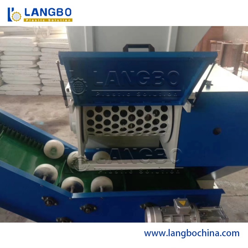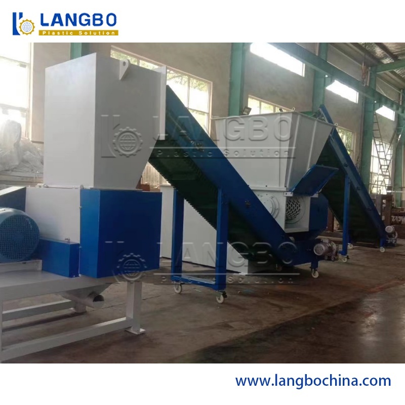 Antes que a linha de extrusão de tubos de HDPE funcione sem problemas para extrudir tubos, os trabalhadores precisam iniciar a máquina e ajustar todos os detalhes durante todo o processo. Nesse processo, serão produzidos muitos blocos de fusão de PE desperdiçados. São blocos grandes e duros o suficiente. Portanto, não podem ser tratados com triturador, só podem ser processados por triturador. Nossa trituradora de eixo único tem alta velocidade de rotação e facas de formato. Os trabalhadores colocam os blocos de fusão desperdiçados pela porta e as partículas cairão da saída.