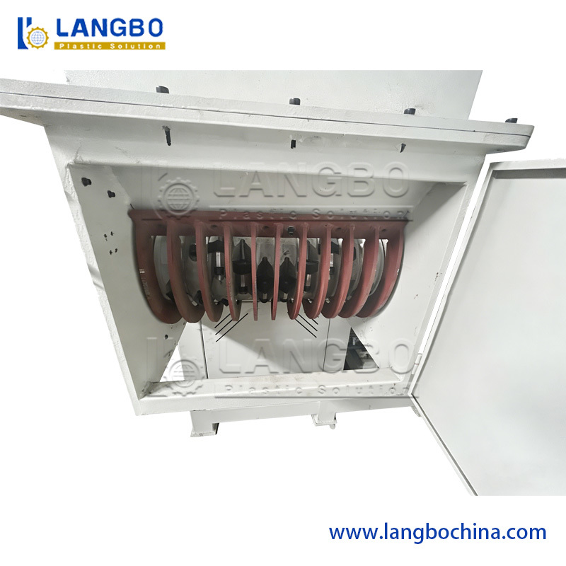 Antes que a linha de extrusão de tubos de HDPE funcione sem problemas para extrudir tubos, os trabalhadores precisam iniciar a máquina e ajustar todos os detalhes durante todo o processo. Nesse processo, serão produzidos muitos blocos de fusão de PE desperdiçados. São blocos grandes e duros o suficiente. Portanto, não podem ser tratados com um triturador, só podem ser processados por um triturador. Nosso triturador de eixo único tem alta velocidade de rotação e facas de formato. Os trabalhadores colocam os blocos de fusão desperdiçados pela porta e as partículas cairão pela saída.