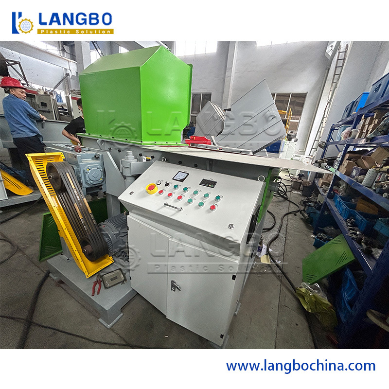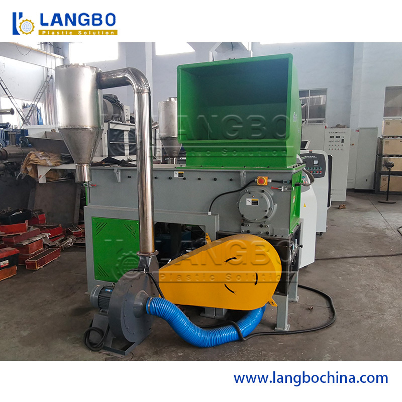 Antes que a linha de extrusão de tubos de HDPE funcione sem problemas para extrudar tubos, os trabalhadores precisam iniciar a máquina e ajustar todos os detalhes durante todo o processo. Nesse processo, serão produzidos muitos blocos de fusão de PE desperdiçados. São blocos grandes e duros o suficiente. Portanto, não podem ser tratados com um triturador, só podem ser processados por um triturador. Nosso triturador de eixo único tem alta velocidade de rotação e facas de formato. Os trabalhadores colocam os blocos de fusão desperdiçados através da porta e as partículas cairão da saída.
