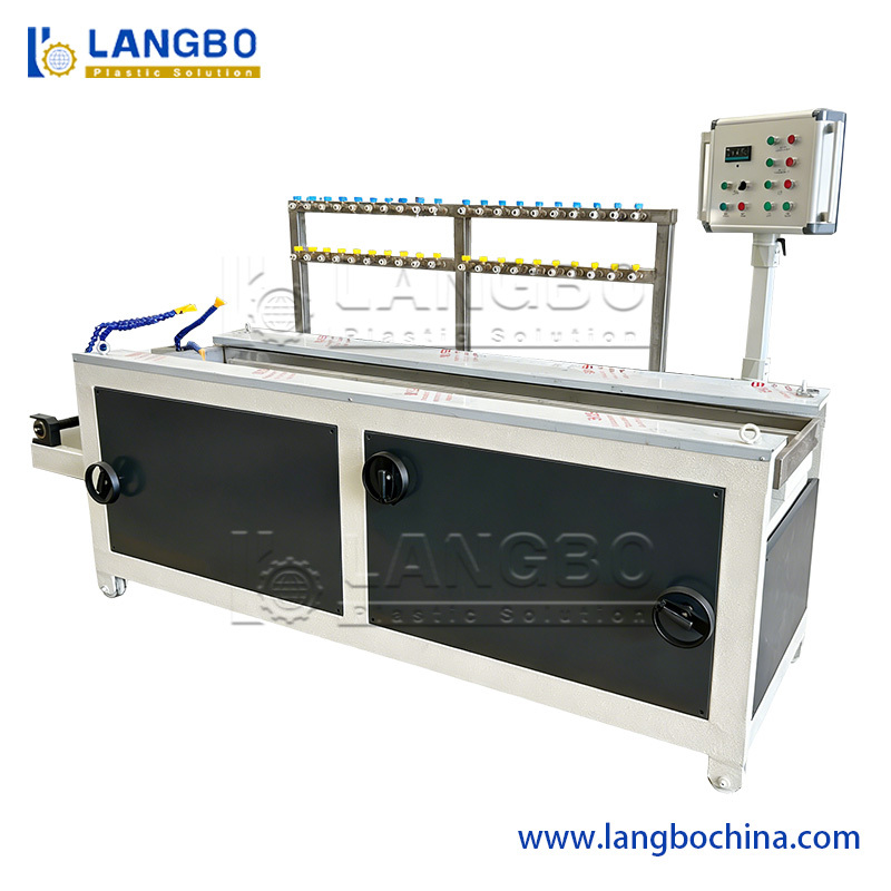 Nos países do meio-oeste, o mercado de iluminação LED é vasto e a demanda é enorme. Para a iluminação LED, a capa e o perfil inferior são feitos de material PC. O tubo de LED de PC de duas cores necessita de técnicas de co-extrusão. Para esta linha, ela equipa um extrusor de 65/28 22kw e outro extrusor de 50/28 11kw. A co-extrusão garante o perfil com duas cores. Adotamos uma mesa de calibração de 2500mm de comprimento e 600mm de largura. Para a máquina de extração, é um método de extração de duas correias. Isso garante que a capa e o tubo inferior de iluminação LED se fixem muito bem um ao outro. No final, temos a unidade de corte e o empilhador para deitar o perfil de PC acabado.DESCRIÇÃO DO PRODUTO:
