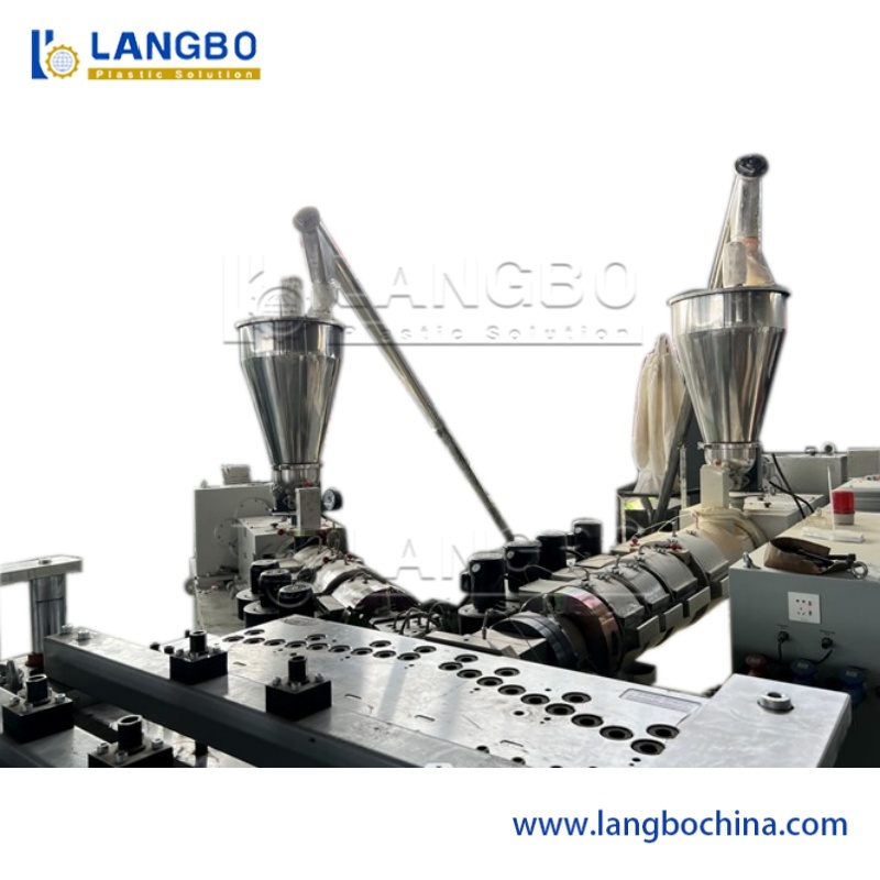 Fabricada com componentes de marcas de ponta, a extrusora garante produção estável, alta eficiência e durabilidade a longo prazo. Seu design de rosca dupla cônica é adaptado às características da matéria-prima, permitindo mistura homogênea, plastificação superior e transporte eficiente.